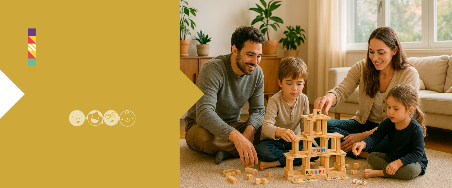 Dominoes, Memory games, Bingo games, Letters, and Towers all have their own natural playful concept, but now they can be assembled into one ultimate construction game
